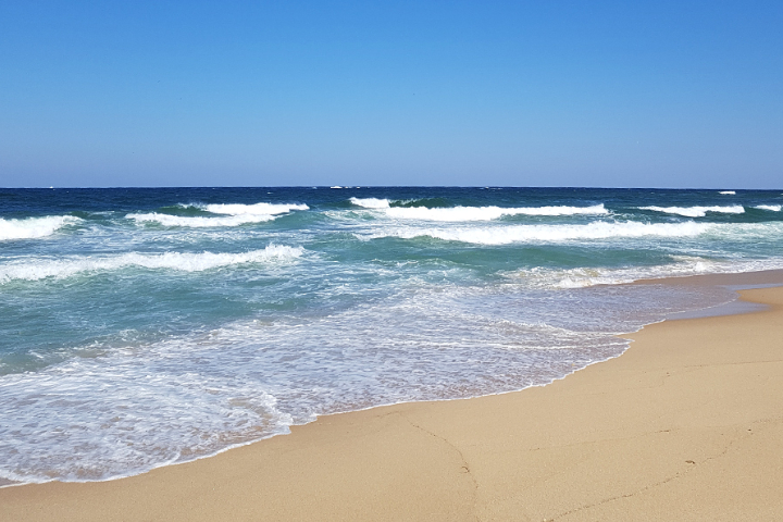 前往 注文津海邊,在沙灘上欣賞白色浪花